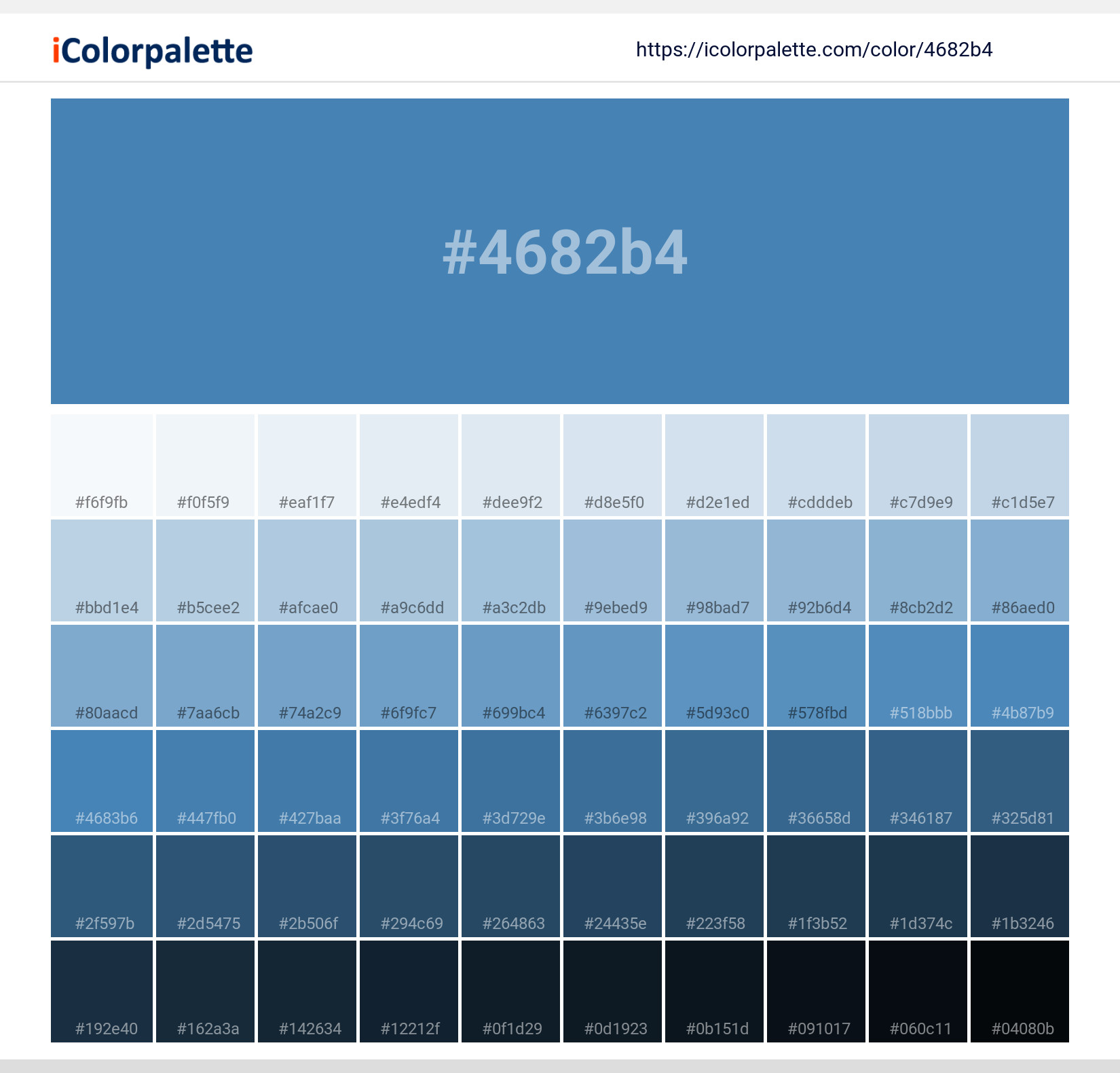 Similar Matching Pantone color s for Steel Blue Color 4682b4 Color Hex code 4682b4. The equivalent RGB values are 70 130 180 which. This link will take you to the Combo Tester.